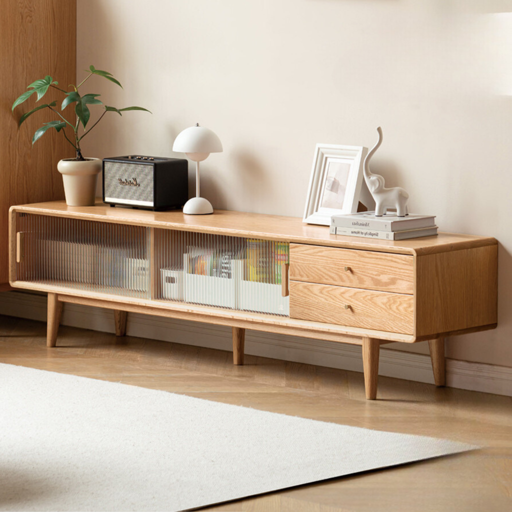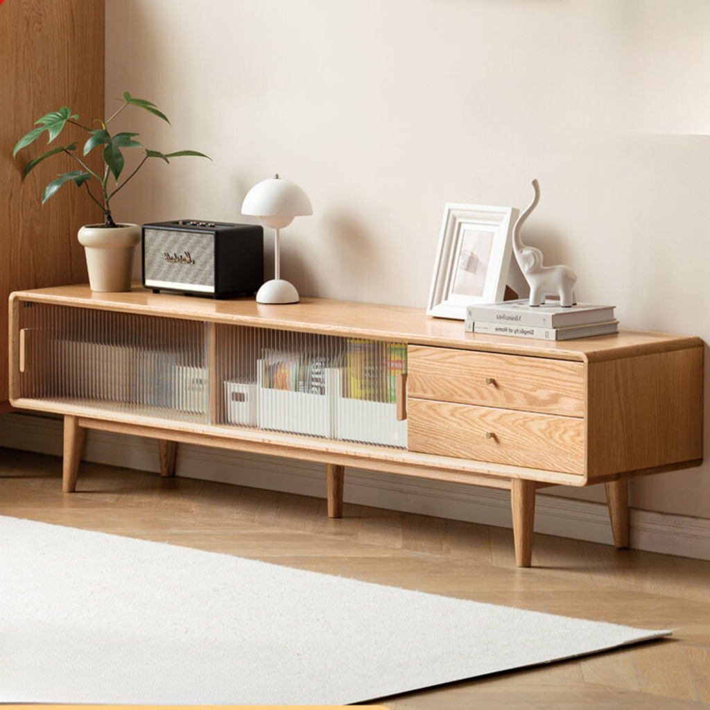 Tủ Tivi Gỗ Sồi Kết Hợp Cánh Cửa Lùa Kính
