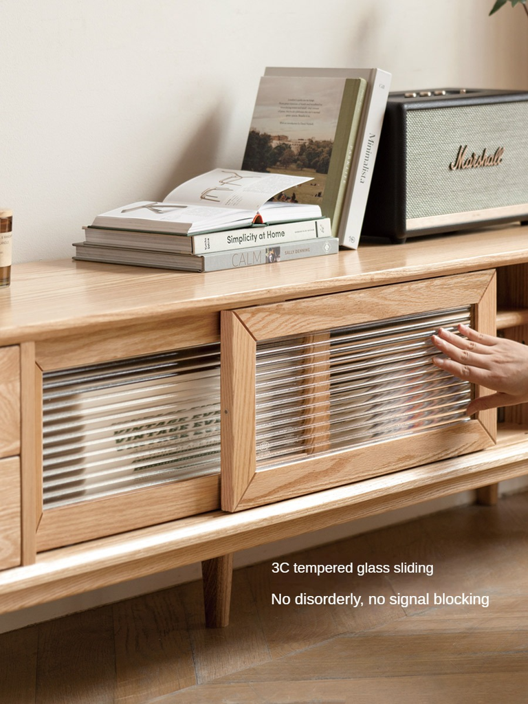 Tủ Tivi Gỗ Sồi Kết Hợp Kính Dài 180 Sâu 40 Cao 46 (сm)