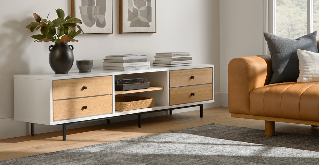 Tủ Tivi Gỗ Sồi Sơn Trắng Cao 40 Rộng 200 Sâu 30 (cm)
