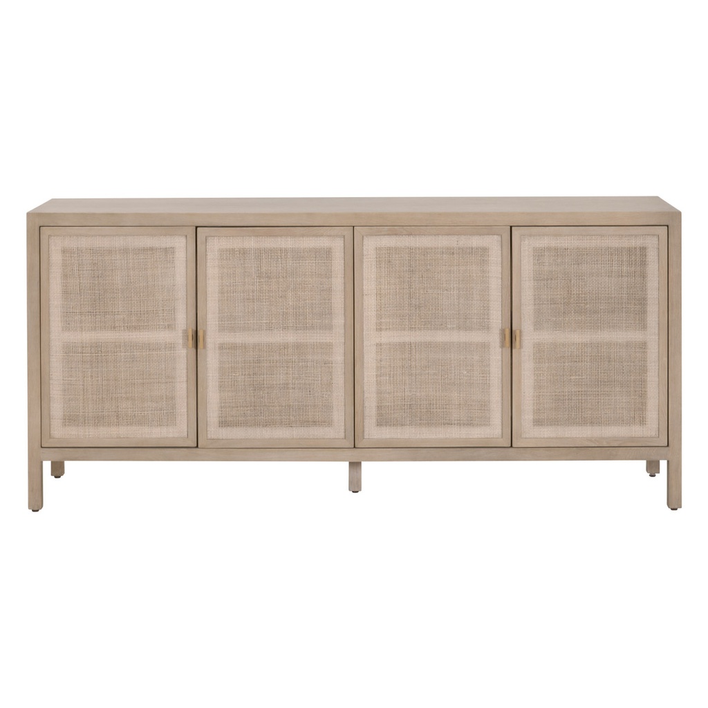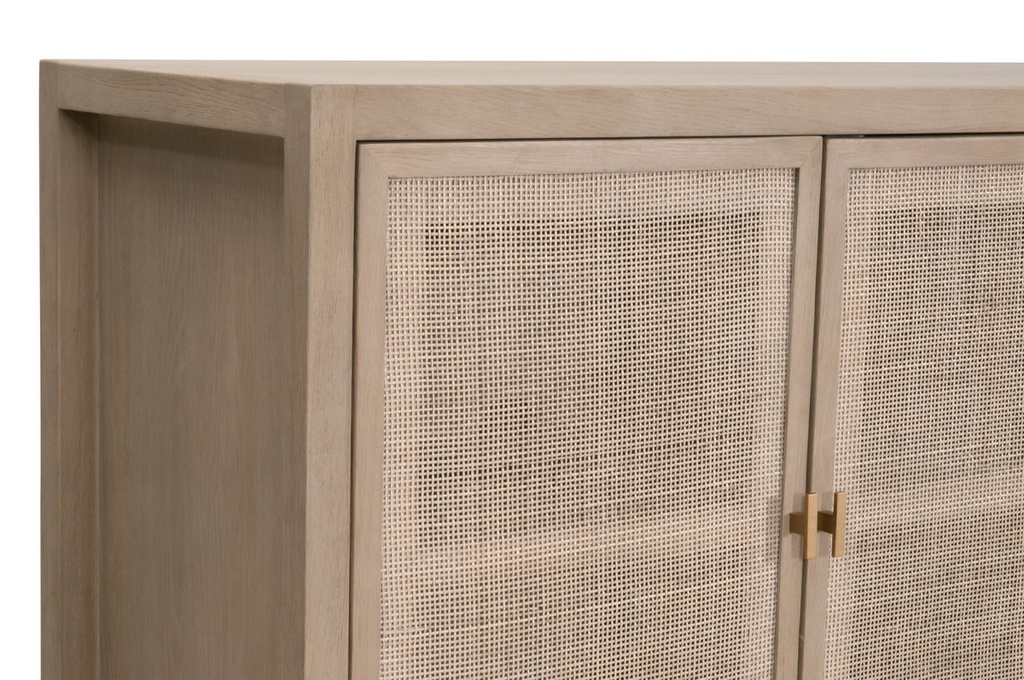 Tủ Trang Trí 4 Cánh Gỗ Sồi Kếp Hợp Mây