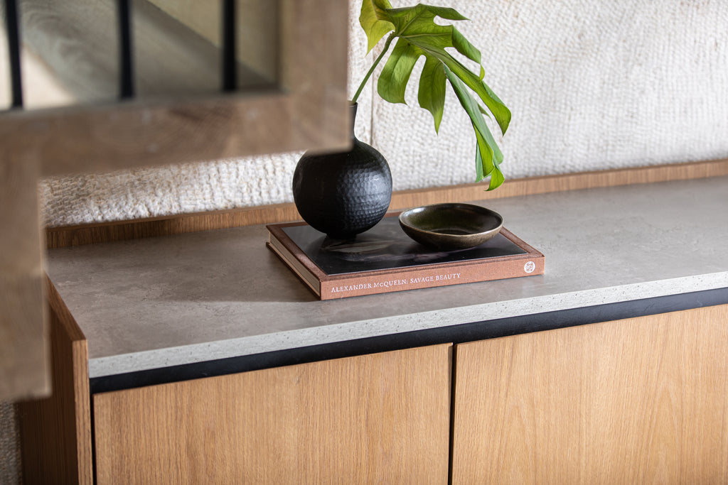 Tủ Trang Trí Gỗ Sồi Kết Hợp Mặt Bàn Đá Dài 154 Cao 84 Sâu 45 (cm)