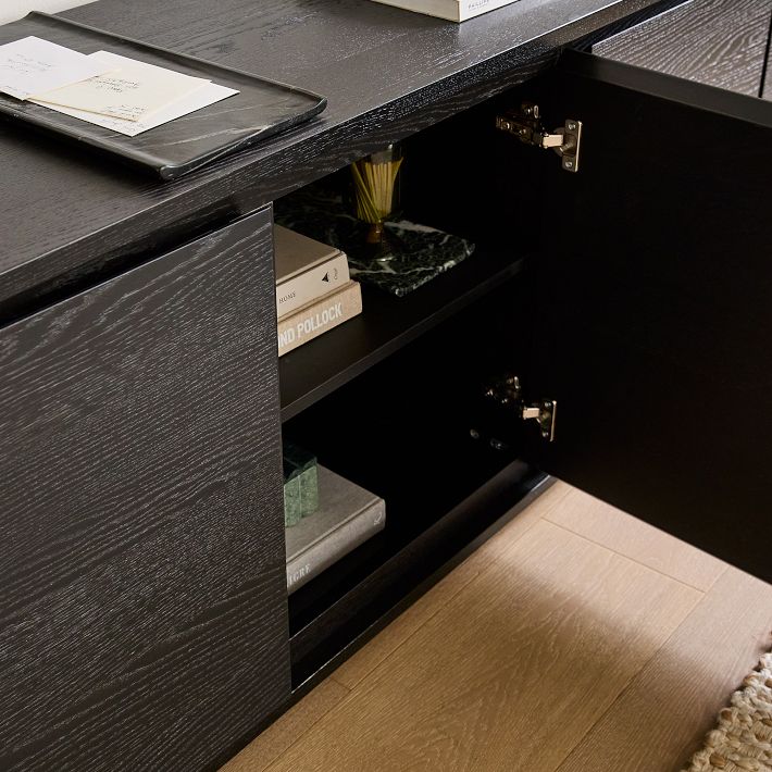 Tủ Trang Trí Sơn Đen Gỗ Sồi Dài 203 Sâu 45 Cao 68 (cm)